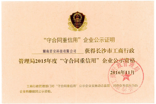 2015年長沙市“守合同 重信用”單位